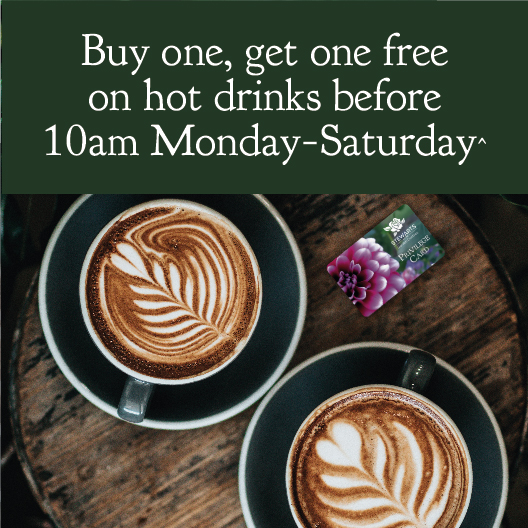 ^Free hot drink applies when purchasing two drinks in the same transaction before 10am, Monday - Saturday when Privilege Card is presented at time of purchase.