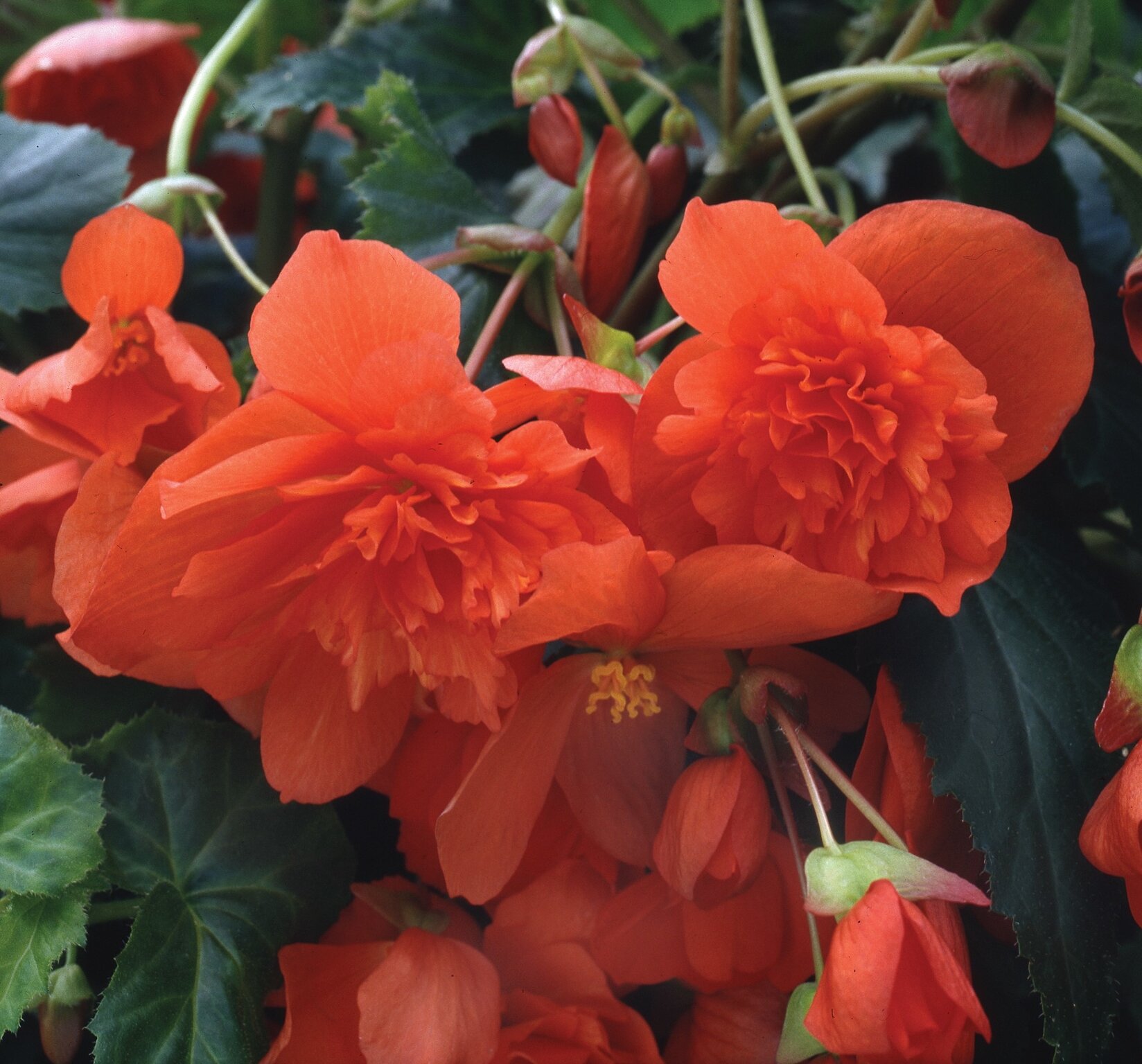 - A trailing variety of begonia with large, blousy dark orange double flowers