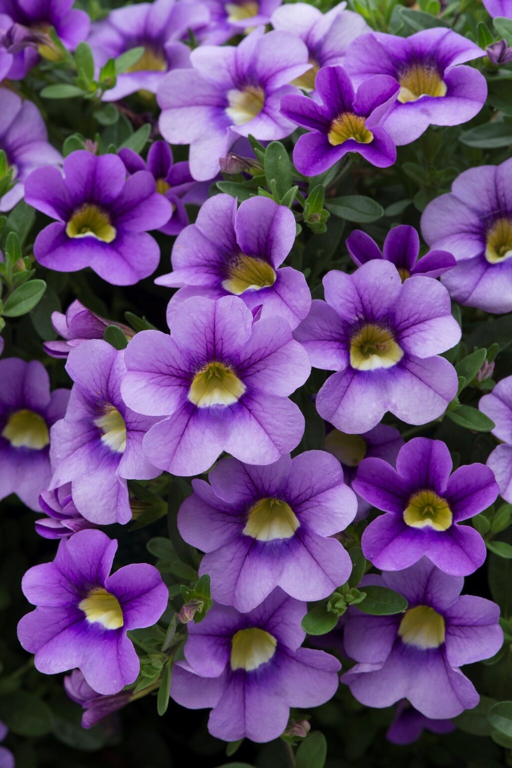 - Masses of light blue single flowers, with a yellow throat, smother the plant all summer long