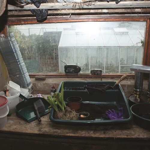 A weather resistant potting tray with built-in tray and tool holder for complete ease. A sturdy tray and shelf that is perfect for potting out new plants and keeping a clean work area. The wide front opening and deep sides ensure a large area to work in comfort and keep a neat area & contained to prevent spillage or alternatively, can be drilled for drainage.