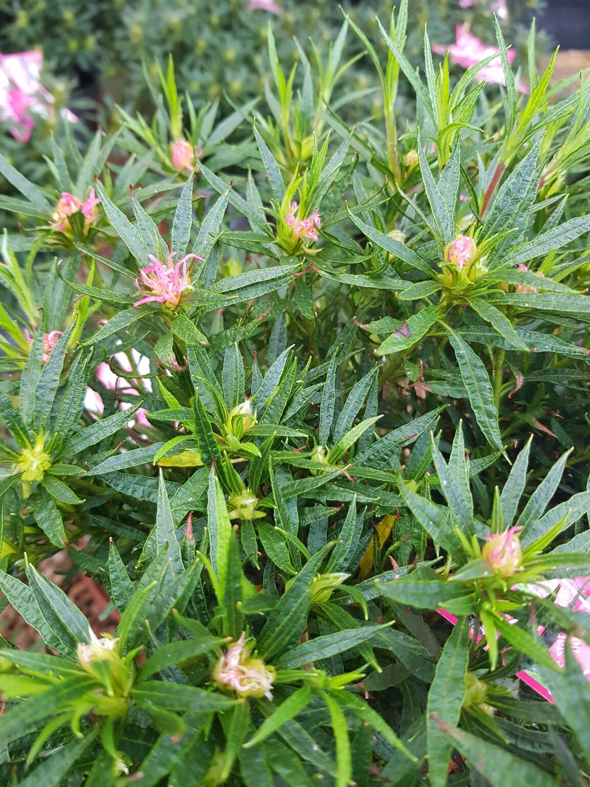 - A compact evergreen rhododendron with unique frilly star like flowers in a vivid shade of pink from Aril to May