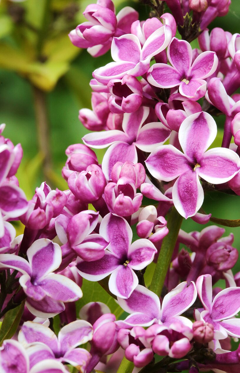 - In late spring large single highly perfumed dark red/purple flowers with a distinctive white edge appear. The flowers are rich in nectar and a real magnet for bees and butterflies