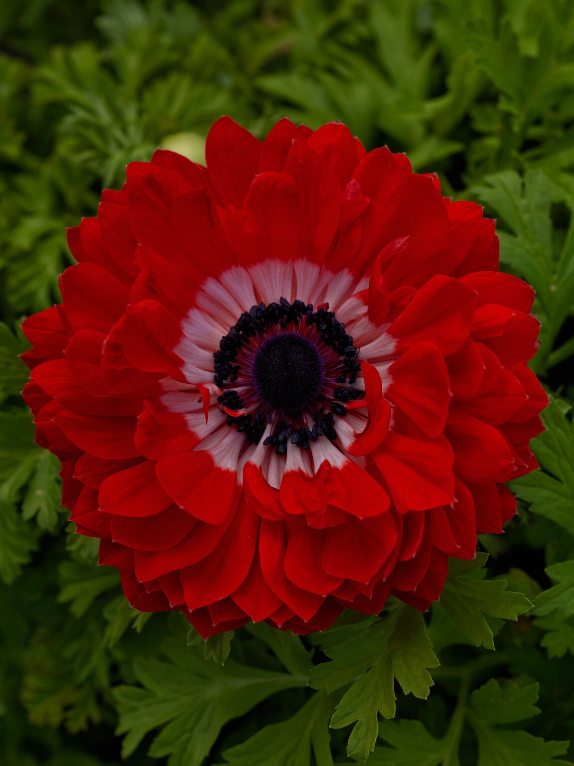 - A deciduous perennial with bright red double flowers, with a white eye, throughout the spring