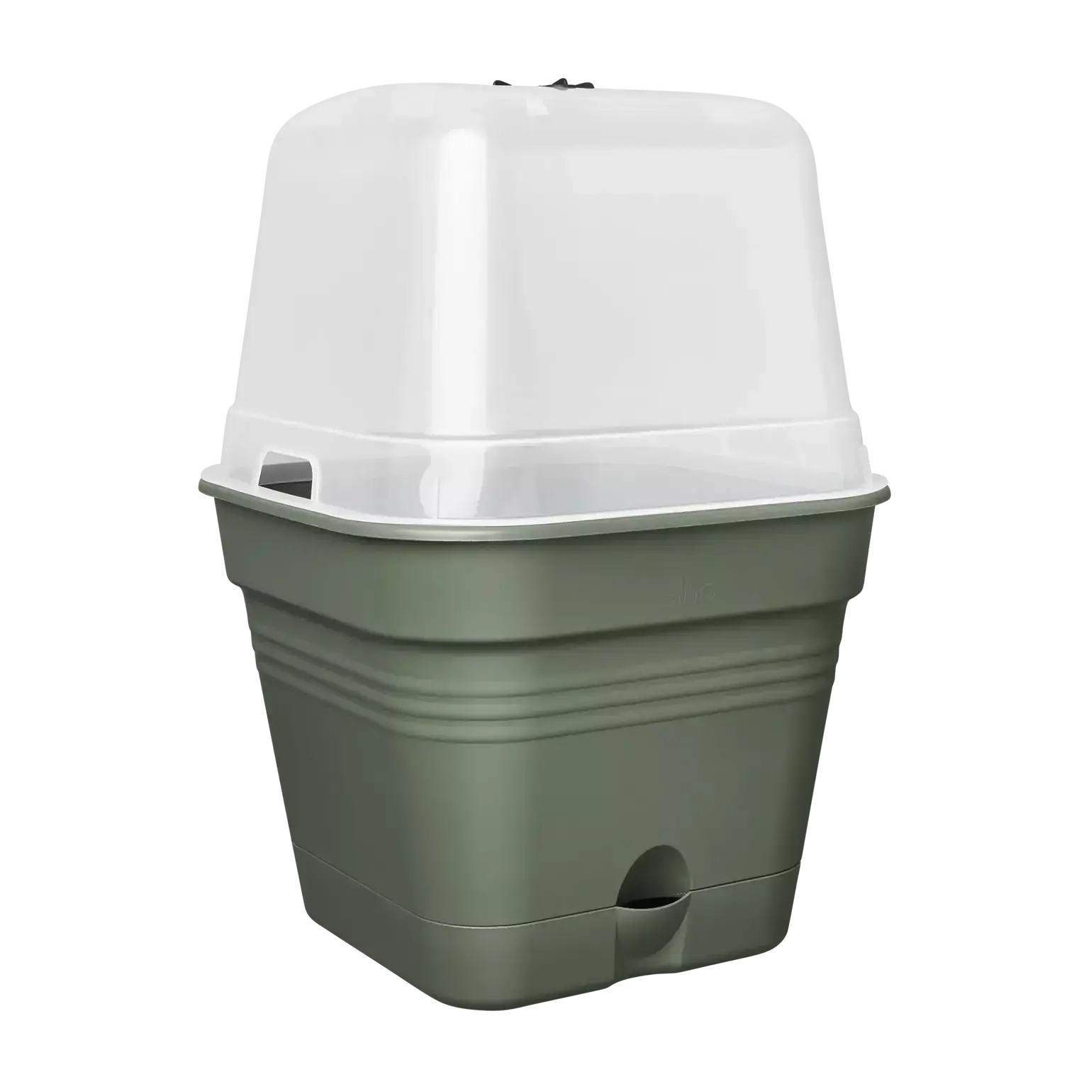 Would you like to try growing your own fruit, vegetables, and herbs at home? You can get started right now with the green basics growpot square all-in-1. This square cultivation pot is just the thing, wherever you want to start growing. Water is essential for healthy plant growth, so this growpot has an integrated water reservoir. Small plants also need to be well protected as they grow. That's why this cultivation pot comes with an integrated grow house. This is a top-quality product that you can enjoy for many years to come. This flower pot was made with love for nature: made from 100% recycled plastic, produced using wind energy, and 100% recyclable.