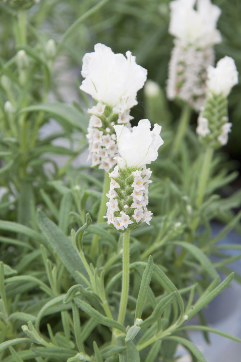 - Attractive white flower heads appear late spring on top of slender green stems. The flowers are topped with pretty white bracts