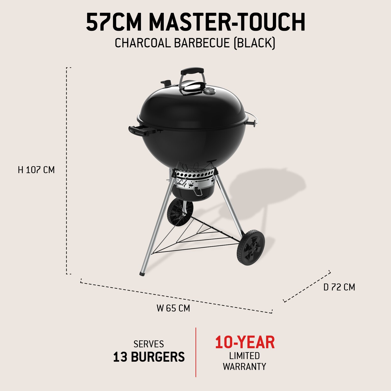 This Weber charcoal barbecue is built to last with a 10-year limited warranty on the bowl and lid, so you can enjoy great grilling season after season.
