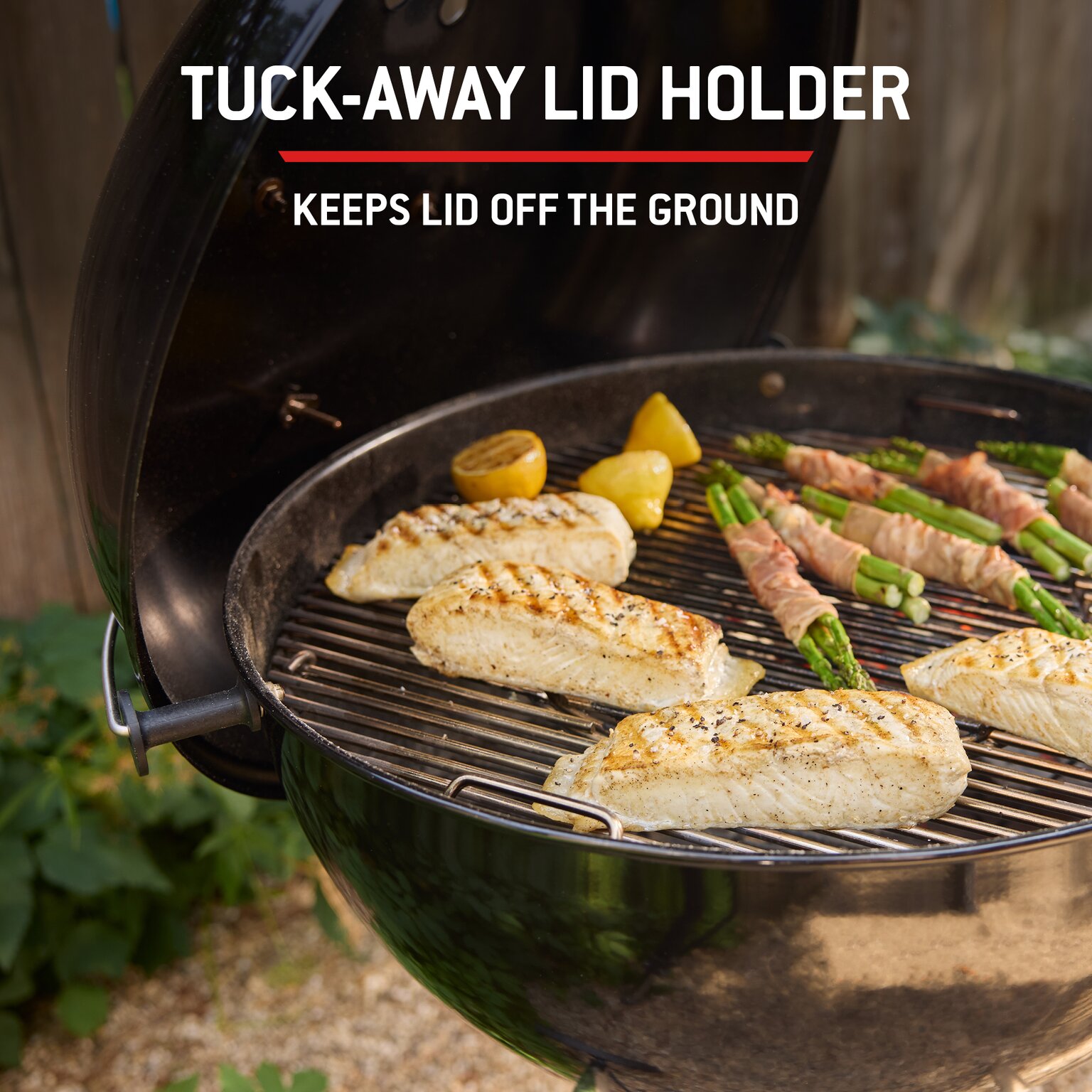 This charcoal grill also includes practical features that make barbecuing easier and more enjoyable. The Tuck-Away lid holder gives you a safe and convenient place to rest the hot lid during cooking, and the built-in lid thermometer ensures you stay in control of cooking temperatures. The One-Touch cleaning system sweeps ash into a high-capacity removable catcher, making post-barbecue tidying quick and simple.
