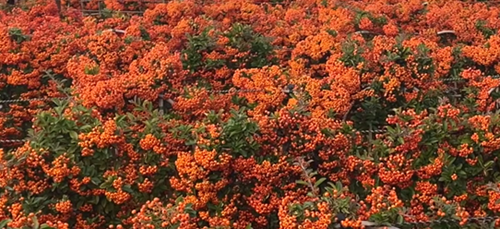 Masses of small white flowers in the early summer are followed by a swarm of orange berries in the autumn