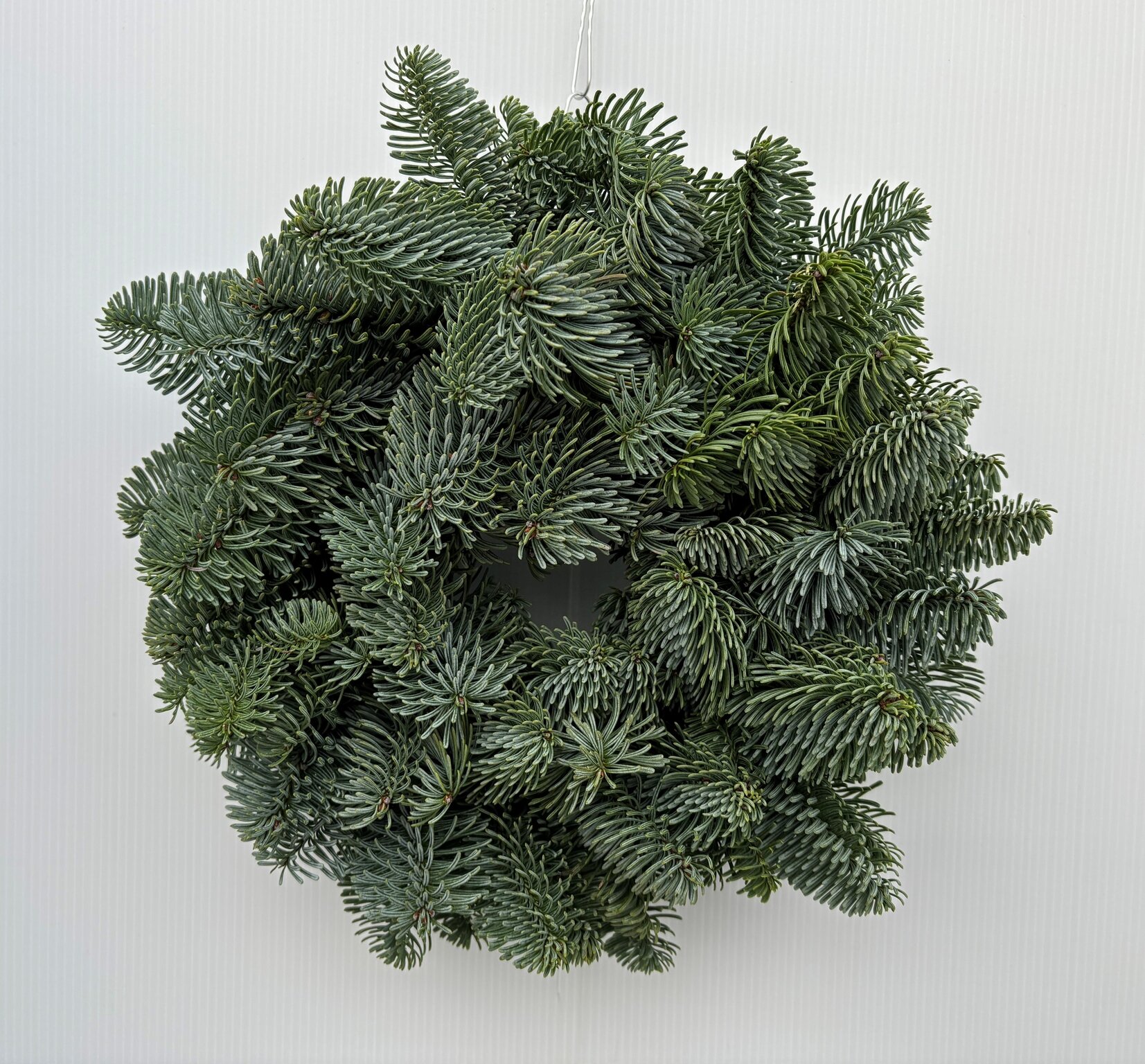 - A 8 inch (20cm) wreath made from British sourced Noble Fir foliage
