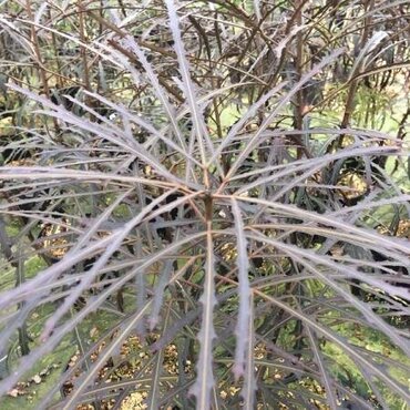 An unusual evergreen shrub with interesting dark brown (almost black) foliage