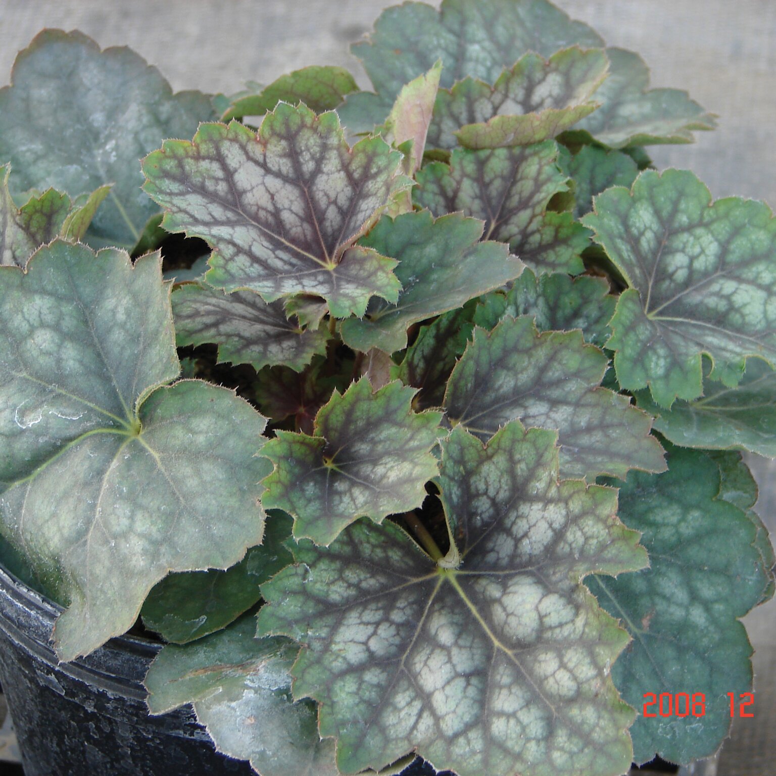 - A clump forming perennial with dense all year round green, purple veined foliage that hasruffled edges