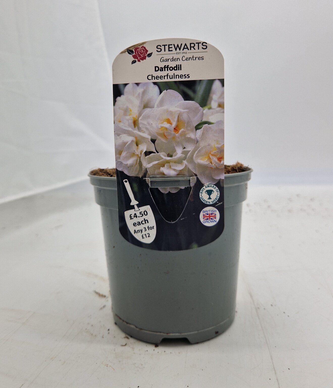 You can buy the Daffodil Cheerfulness Potted Bulb 1 Litre online in our webshop or visit our garden centres in Dorset or Hampshire to buy the Daffodil Cheerfulness Potted Bulb 1 Litre or other Spring Flowering 1 Litre 3 for £12 products. Our centres are conveniently located, have free parking and are easy to visit from places like Christchurch, Wimborne, Titchfield, Bournemouth and Southampton. Feel free to visit us to buy Spring Flowering 1 Litre 3 for £12 products, join our events or have a coffee or lunch at one of our restaurants.