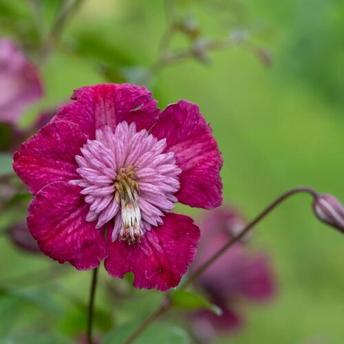 A vigorous climber that forms large plum red double flowers throughout the summer