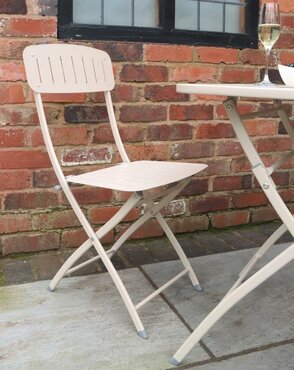 The set's galvanised steel construction ensures durability, while the e-coated finish provides additional protection against the elements. Its folding design allows for convenient storage when not in use, making it perfect for compact spaces. The Champagne cream colour adds a touch of elegance to any outdoor setting.