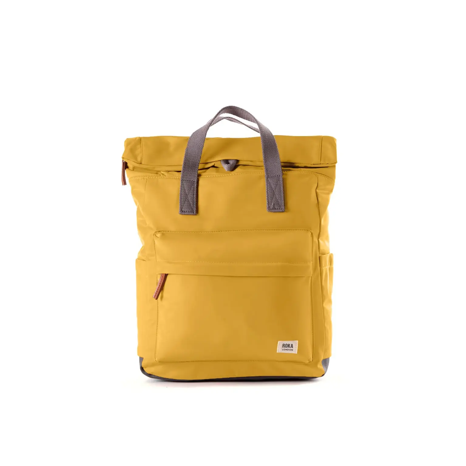 The Roka Canfield B Sustainable Backpack is a stylish, eco-friendly option designed for everyday use. Crafted from triple-coated recycled nylon and featuring weather-resistant materials, this backpack combines durability with a clean, modern design. The roll-top opening secures with a chunky zip and magnetic hold, offering flexible storage while protecting contents from the elements.