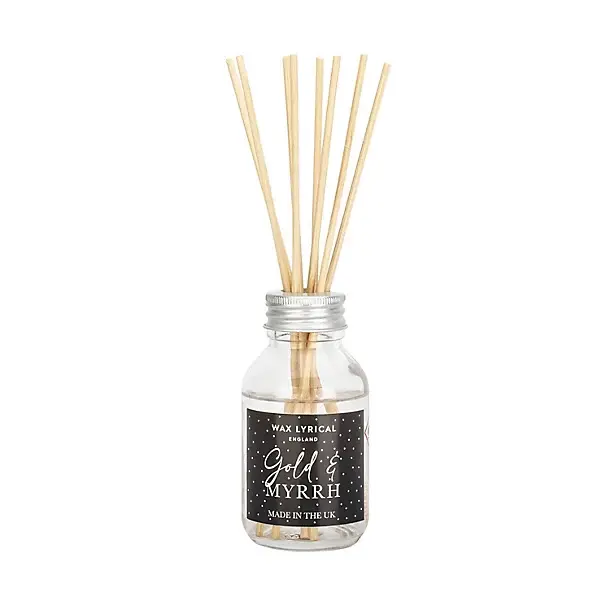 Bring the enchanting scent of the festive season into your home with the Wax Lyrical Gold & Myrrh Reed Diffuser 100 ml. Expertly crafted in the Lake District, this elegant glass diffuser exudes a luxurious fragrance that combines sparkling lemon and crisp green apple top notes with the floral warmth of rose and pink jasmine. A rich base of vanilla, white musk, and amber adds a comforting depth, making it perfect for creating a welcoming atmosphere during Christmas or any special occasion.