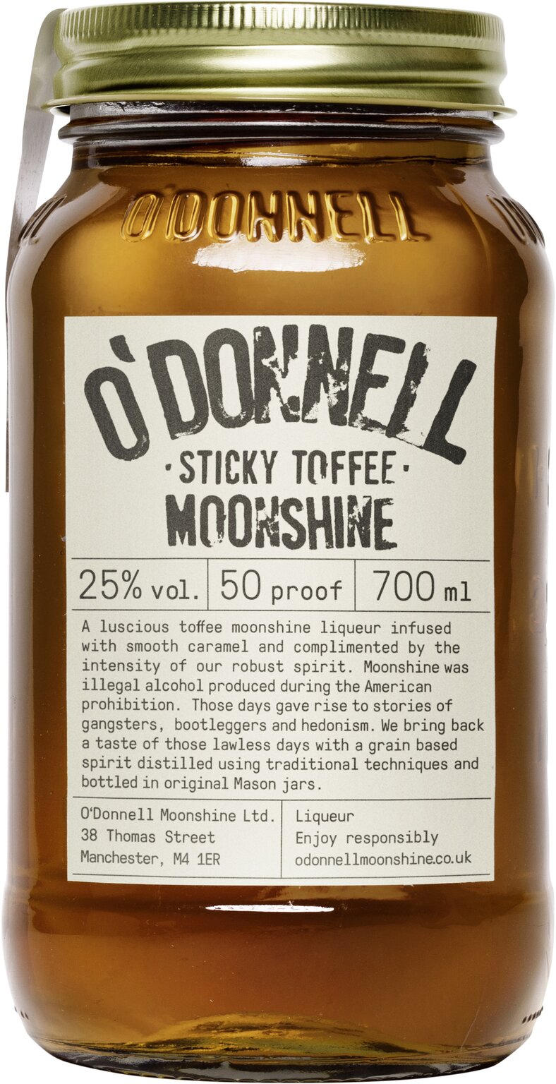 Indulge in the smooth, nostalgic sweetness of O’Donnell Moonshine’s Sticky Toffee, a rich and velvety liqueur that captures the comforting taste of a classic British pudding with a moonshine twist. Presented in O’Donnell’s signature 700ml glass mason jar, this flavour blends buttery caramel and golden toffee notes with a gentle warmth from premium distilled spirit – creating a perfectly balanced drink that’s pure indulgence in every sip.