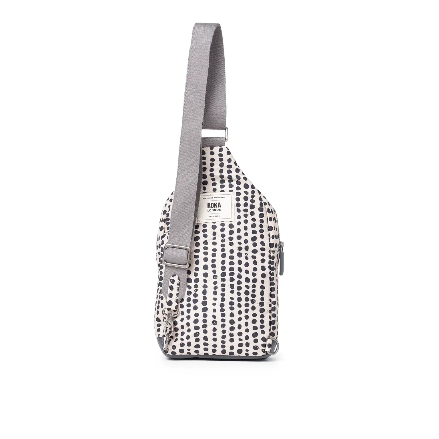 Stay organised and stylish with the ROKA Willesden B Linear Dot Recycled Canvas Sling Bag, a compact yet versatile bag designed for everyday use. Made from recycled canvas, this eco-friendly sling bag combines sustainability with durability, featuring weather-resistant, triple-coated fabric that protects your belongings while remaining lightweight. The subtle Linear Dot pattern adds a modern, sophisticated touch to a classic crossbody design.