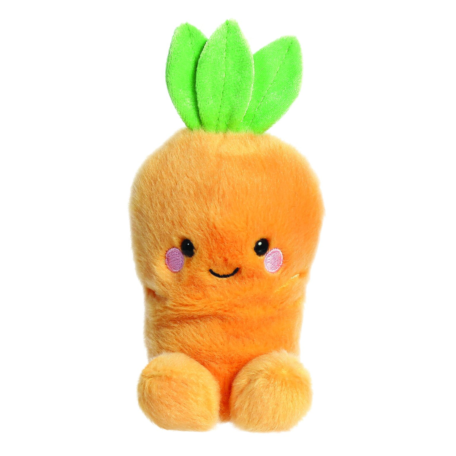 Brighten your day with the Aurora Palm Pals Cheerful Carrot Plush. This delightful 5-inch plush toy features a soft orange body with a green leafy top and a sweet smile, capturing the essence of a cheerful carrot. Designed to fit perfectly in the palm of your hand, Cheerful Carrot is both huggable and portable, making it an ideal companion for children and adults alike.