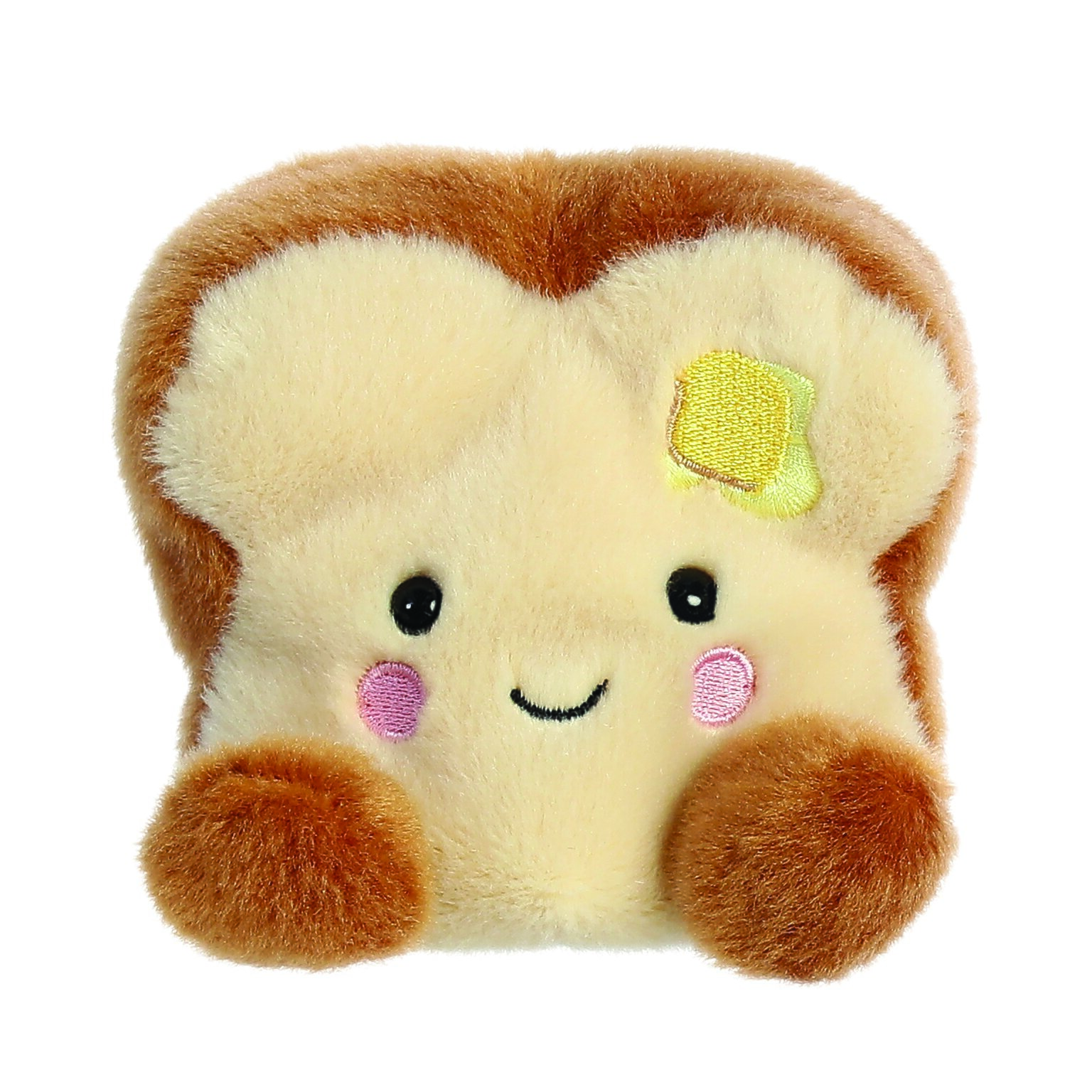 Wake up to the warmth of a friendly face with the Aurora Palm Pals Buttery Toast Plush. This delightful 5-inch plush toy features a golden-brown crust with a buttery yellow centre, complete with an embroidered butter pat on top. Designed to fit perfectly in the palm of your hand, Buttery Toast is both huggable and portable, making it an ideal companion for children and adults alike.