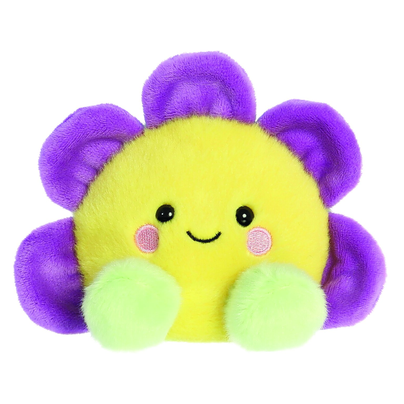 Add a burst of botanical charm to your collection with the Aurora Palm Pals Fallon Flower Plush. This delightful 5-inch plush toy features a soft yellow body with vibrant purple petals, green leaf-like feet, and an embroidered smiling face with pink accents, capturing the essence of a cheerful and friendly flower. Designed to fit perfectly in the palm of your hand, Fallon Flower is both huggable and portable, making her an ideal companion for children and adults alike.