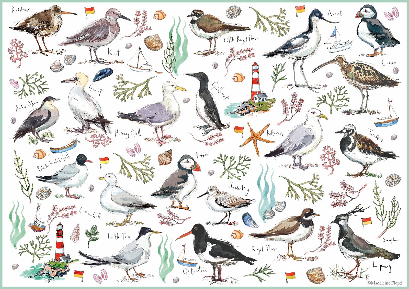 Discover the beauty of coastal wildlife with the Seabirds 500 Piece Jigsaw Puzzle by Otter House, featuring artwork by the renowned artist Madeleine Floyd. This engaging puzzle displays a vibrant and detailed scene of seabirds, making it an ideal choice for nature enthusiasts, bird watchers and puzzle fans.