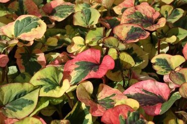 - A deciduous perennial with colourful green/yellow/red foliage and white flowers in the summer