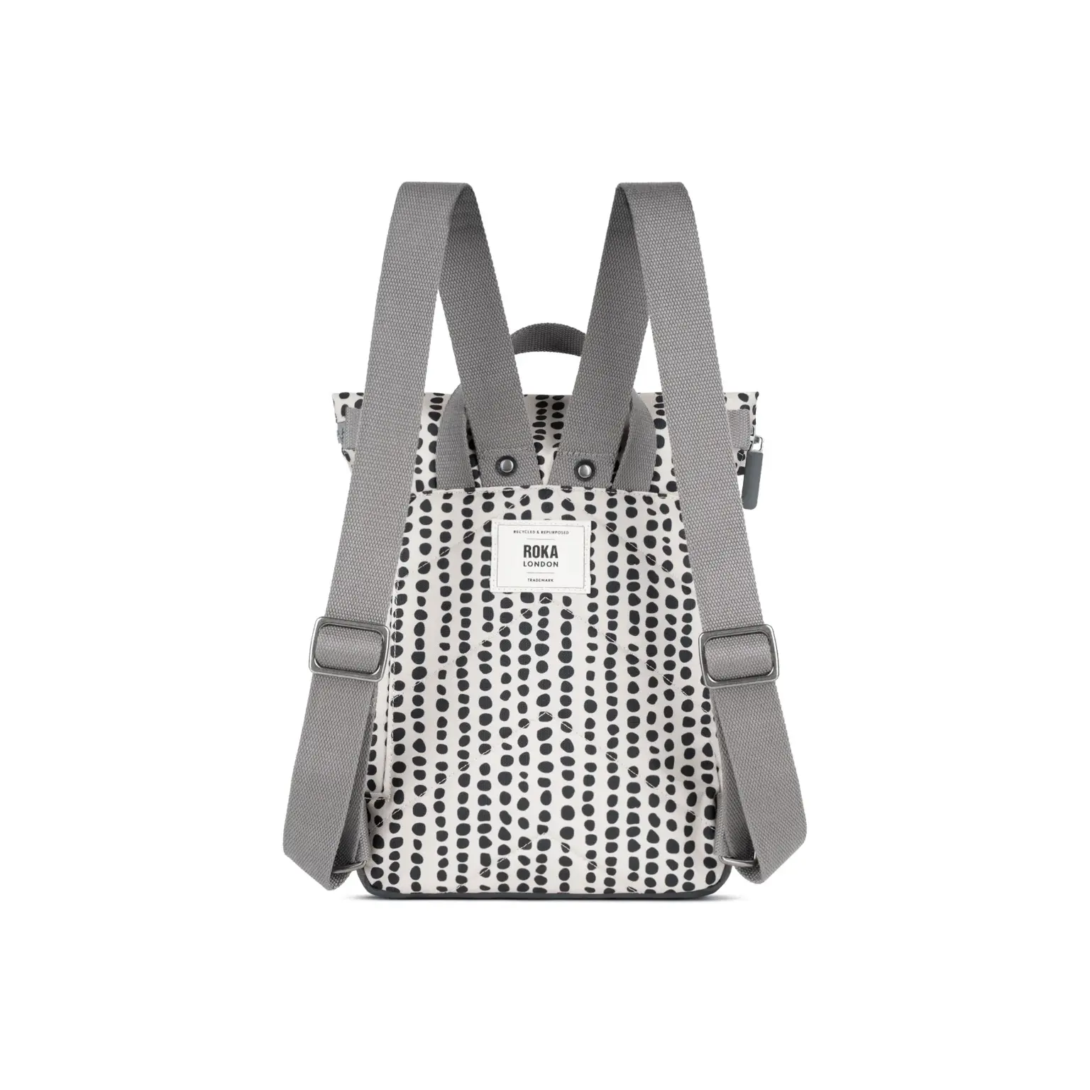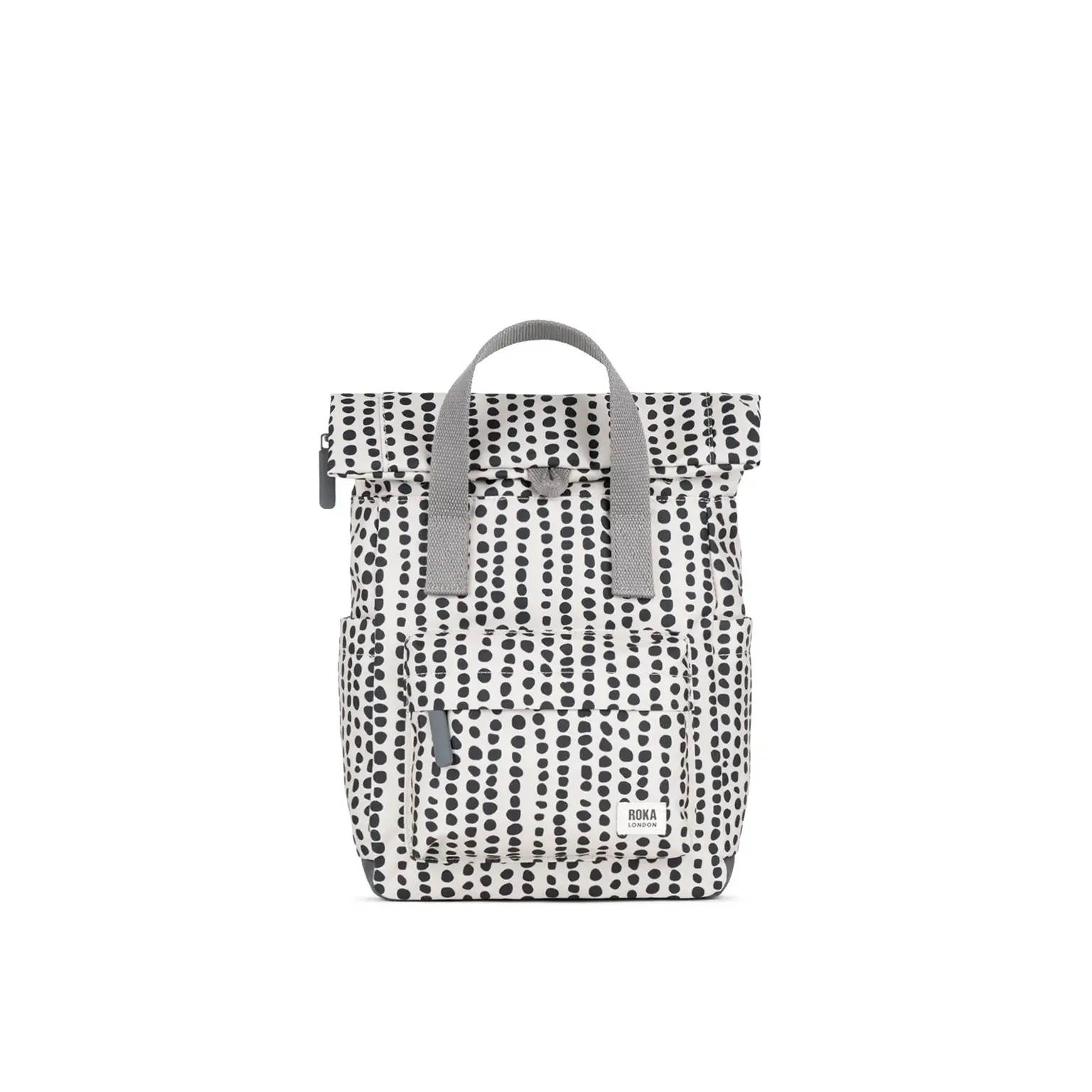 The Roka Canfield B Linear Dot Recycled Canvas Backpack is a stylish, eco‑friendly roll‑top backpack that combines contemporary design with everyday functionality. Crafted from weather‑resistant recycled canvas (triple‑coated) and lined with durable recycled nylon, this sustainable backpack offers a textured, matte finish and long‑lasting performance perfect for commuting, travel, school and daily adventures.