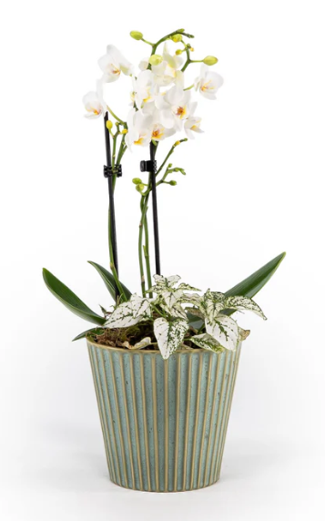 Introduce classic floral beauty to your home or gifting range with this Phalaenopsis arrangement in a 12 cm Hampshire ceramic pot, featuring stunning moth orchids in a beautifully curated display. Phalaenopsis orchids are among the UK’s most popular indoor houseplants, celebrated for their exotic, long‑lasting blooms, graceful form and effortless charm, making them perfect for styling interiors or offering as thoughtful gifts.