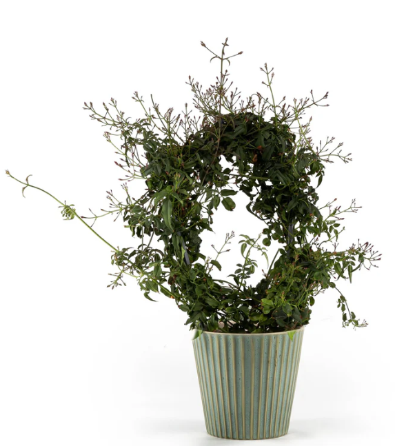 Introduce refined floral charm and gentle fragrance into your home with the Jasmine 12 cm Hoop in Hampshire Ceramic — a decorative indoor flowering plant trained on a stylish hoop support. This elegant jasmine houseplant combines lush green foliage with dainty, scented blooms, creating a striking botanical feature perfect for shelves, windowsills and living spaces. Indoors, jasmine delivers eye‑catching structure and subtle scent that enhances any interior with timeless appeal.