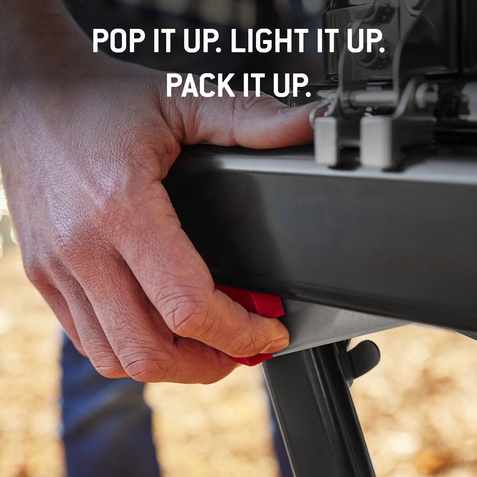 One-handed setup and fold mechanism for effortless use