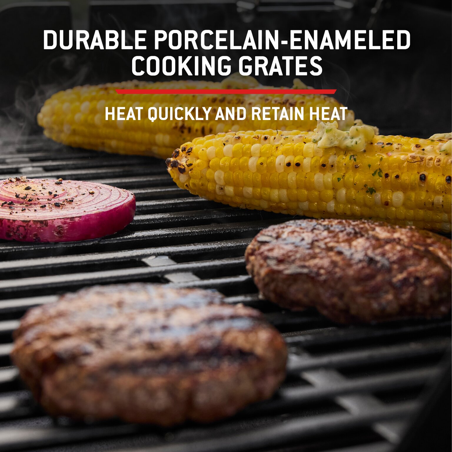 Equipped with durable porcelain-enamelled cast-iron cooking grates, the Spirit Classic retains even heat and delivers great searing performance, while the Snap-Jet ignition makes lighting the burners simple and quick. Practical features include fold-down side tables for food prep and serving, integrated tool hooks to keep utensils close at hand, and a built-in warming rack to keep cooked food at the right temperature.