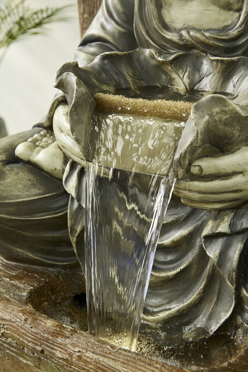 - Featuring an illuminated halo ring light and rain shower water effect, with a further pouring lotus flower from the Buddha's hands below