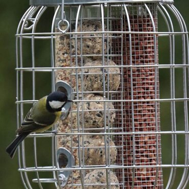 A fat ball, seed and peanut feeder are encased with a robust silver cage that will deter larger birds and squirrels from stealing seed, so your smaller birds can dine in peace. Featuring a large hanging hook, this feeder is simple to hang from a tree branch or your bird feeding station and makes a beautifully decorative addition to any outdoor space.
